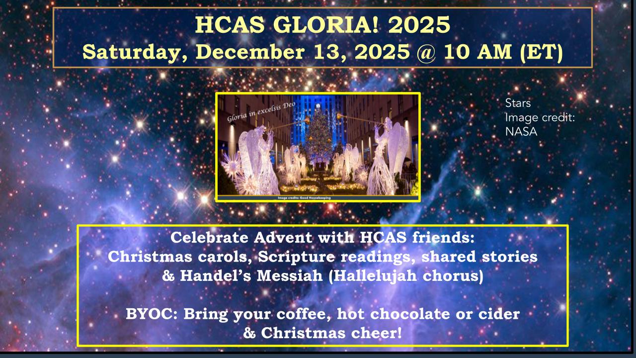 You are warmly invited to join HCAS for our annual Gloria! event, an Advent celebration of Christmas carols, Scripture readings & time to share and reflect on the year.